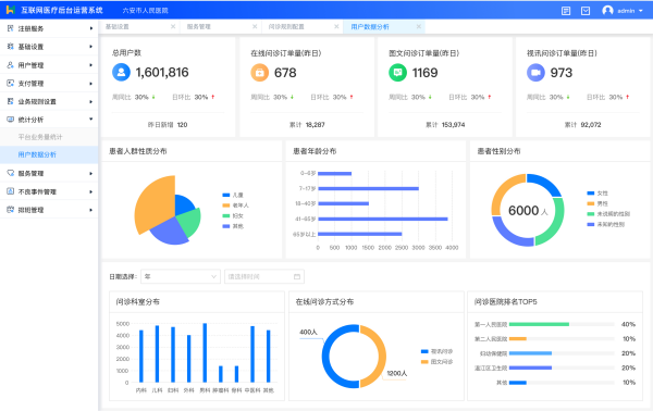 支撐醫院綜合運營和線上業務監管,滿足互聯網醫院、遠程醫療協同、家庭醫生、健康管理等領域的業務場景。